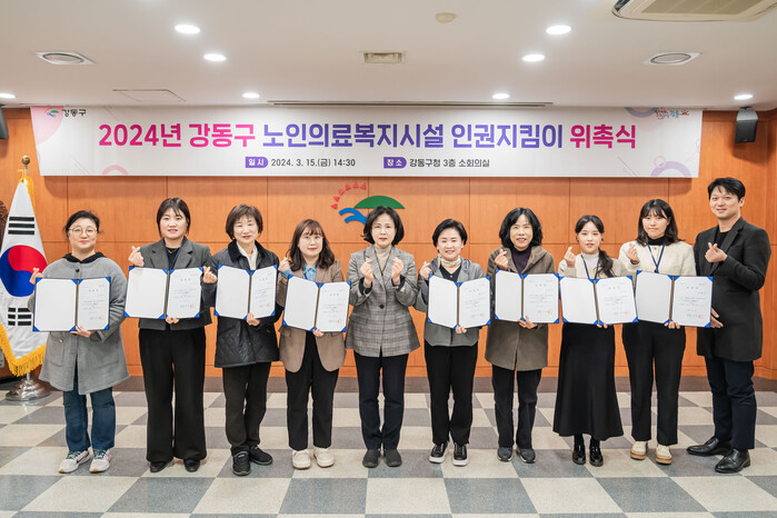 이에 구는 지난달 15일 ‘2024년 강동구 노인의료복지시설 인권지킴이 위촉식’을 열고 신규 인권지킴이 8명에 대한 위촉장 수여식과 노인 인권 관련 교육을 진행했다.