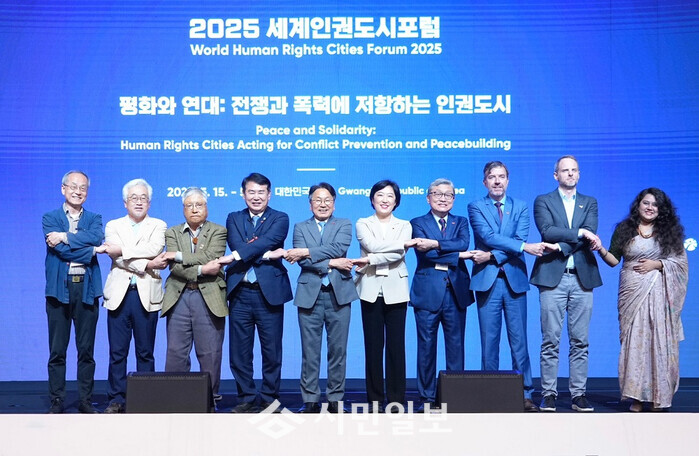 ‘2025 세계인권도시포럼’이 15일 김대중컨벤션센터에서 개막했다. 이 포럼은 광주광역시, 유엔 인권최고대표사무소(OHCHR), 유네스코(UNESCO), 광주광역시교육청이 공동 주최하며, 세계 각국의 인권전문가 등 1500명이 참석한다. 올해 포럼은 ‘평화와 연대: 전쟁과 폭력에 저항하는 인권도시’를 주제로, 이날부터 17일까지 사흘간 진행된다.