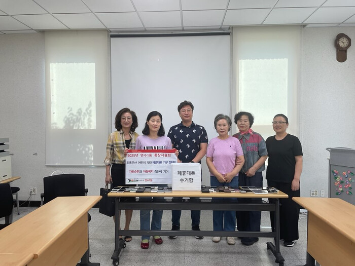 [인천=문찬식 기자] 인천 연수구 연수1동 통장자율회(회장 조한주)는 11일 폐휴대전화 기부 캠페인을 했다.