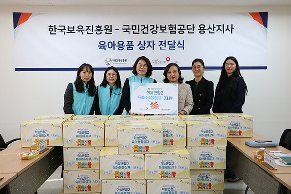 한국보육진흥원(원장 나성웅)은 국민건강보험공단 용산지사로부터 육아용품 상자 30박스를 제공받아 관내 육아 사각지대에 놓인 가정과 시설을 대상으로 이를 전달했다.
