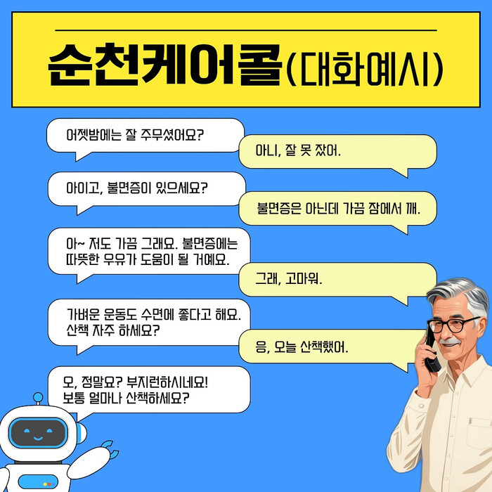 ‘순천 케어콜’은 대화형 인공지능 기술을 활용해 AI가 마치 실제 상담원처럼 매주 돌봄 대상자에게 전화를 걸어 안부를 묻고 말벗이 돼 주는 사업이다.