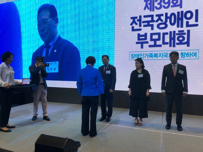 강 의장은 평소 장애인과 그 가족들의 권리를 보호하기 위한 인프라가 늘 미흡한 상황에 공감하며 장애인의 불편을 개선하고 재활을 돕기 위한 노력을 해온 공로를 인정받았다.