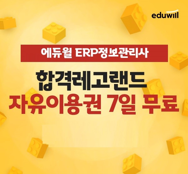 에듀윌에 따르면 ‘합격레고랜드’ 이벤트는 ERP정보관리사를 비롯한 재경관리사, 전산세무회계 등 총 15개의 자격증 대비를 지원하는 강의를 신청일로부터 7일간 무료 수강할 수 있는 혜택을 제공한다.