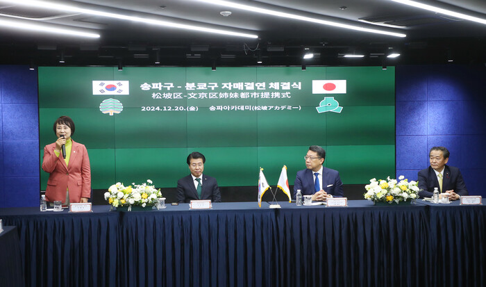 [시민일보 = 이대우 기자] 송파구의회(의장 이혜숙)가 지난 20일 송파아카데미에서 열린 ‘송파구-일본 도쿄도 분쿄구 자매결연 체결식’에 참석했다.