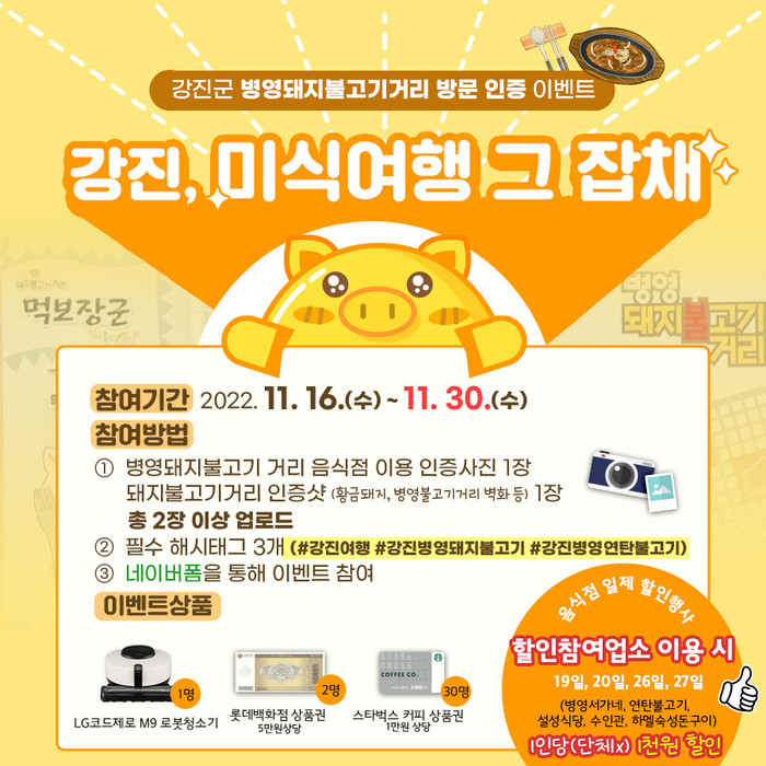 | ▲ 강진군 병영돼지불고기거리 방문 인증 이벤트 홍보 포스터 / 강진군 제공 |