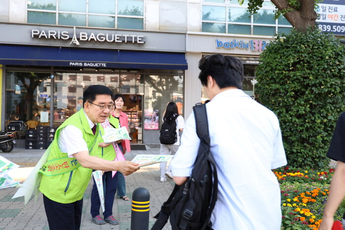 문헌일 구청장도 팔을 걷어붙이고 주민들에게 안내문을 나눠주며 홍보에 동참했다.