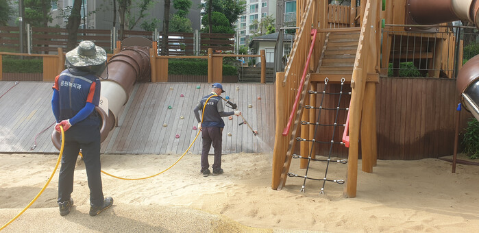 소독을 위한 별도 전담팀이 친환경 오존수를 활용해 소독을 실시하며, 지역내 어린이공원의 모래놀이터의 경우, 연 2회 기생충 검사, 연 1회 중금속 검사도 함께 시행할 방침이다.