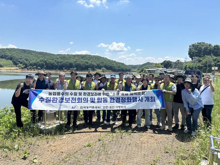 [연천=조영환 기자] 한국농어촌공사 연천포천가평지사가 26일 경기 연천군 백학저수지 일원에서 연천군의회, 연천군청, 농업인단체, 전문가, 지역주민과 함께 하는 '2024년 수질환경보전회의 및 합동 환경정화행사'를 진행했다.