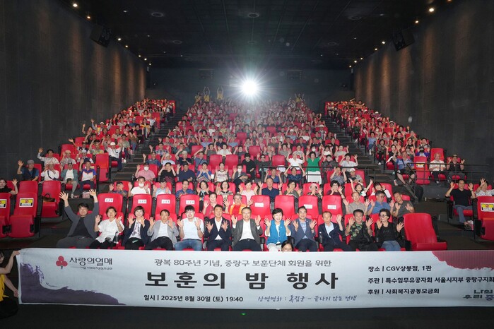 [시민일보 = 여영준 기자] 중랑구(구청장 류경기)는 광복 80주년을 기념해 지난 8월 30일 CGV 상봉점에서 보훈단체 회원 320여 명을 초청해 ‘보훈의 밤 [보훈단체 영화 관람] 행사’를 개최했다.