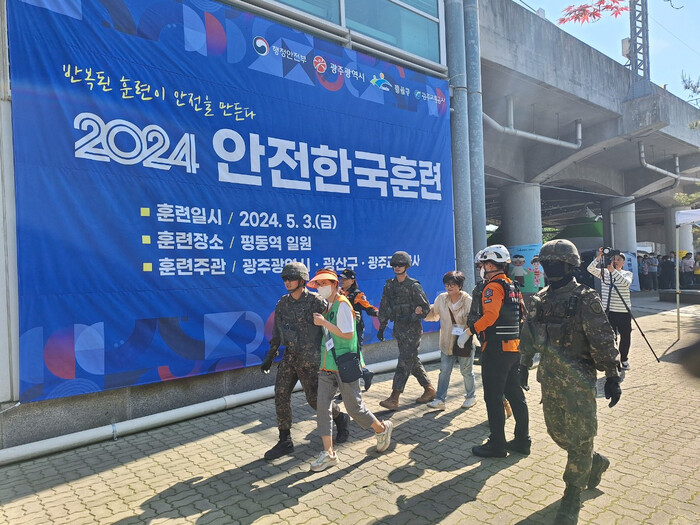 시는 올해 평동역에서 풍수해 및 도시철도 대형사고를 가정해 광산구, 교통공사와 합동으로 시범훈련을 실시했다.