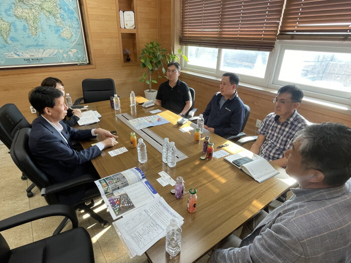 | 인천항만공사 김상기 운영본부 부사장이 배후단지 입주업체와 현안을 논의하고 있다. (사진=인천항만공사) |