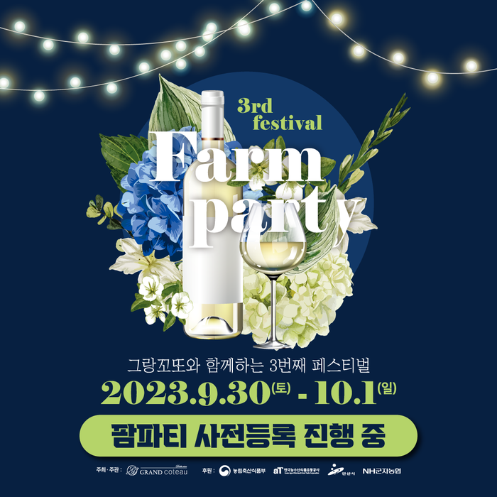 그랑꼬도 와이너리가 주최하고 주관하는 이번 행사는 농림축산식품부, aT, 안산시, 군자농협에서 후원한다. 오는 9월 30일, 10월 1일 양일간 오후 2시부터 오후 8시까지 그랑꼬또 와이너리에서 진행된다.