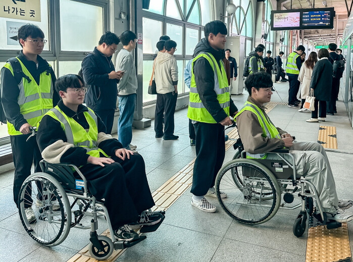 이어 휠체어 탑승, 시각장애인용 지팡이 사용, 귀마개 착용 등을 통해 보행·시각·청각 장애인의 입장에서 지하철을 직접 이용해보며 교통약자의 이동 환경을 체감했다.