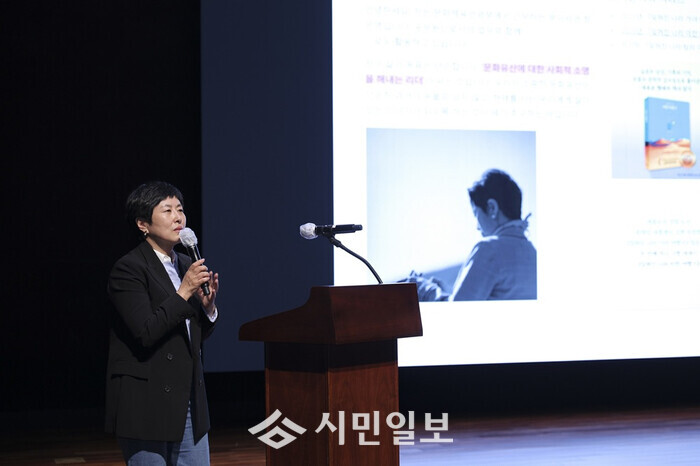 ‘잊혀진 나라 마한 여행기’의 정은경 작가가, 전남 영암군이 지난 23일 한국트로트가요센터에서 개최한 특강에서 ‘영암 마한’의 중요성을 강조했다.
