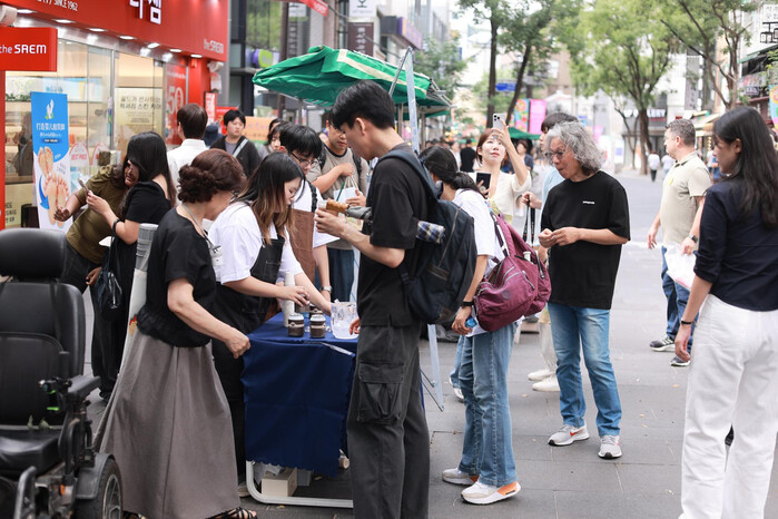 | ▲ 지난 주말 서울 인사동 '부산슈퍼' 매장 앞에서 열린 '부산 커피 투어' 시음 이벤트에서 시민과 관광객들이 부산의 로컬 커피를 맛보고 있다. / 사진 = 부산관광공사 |