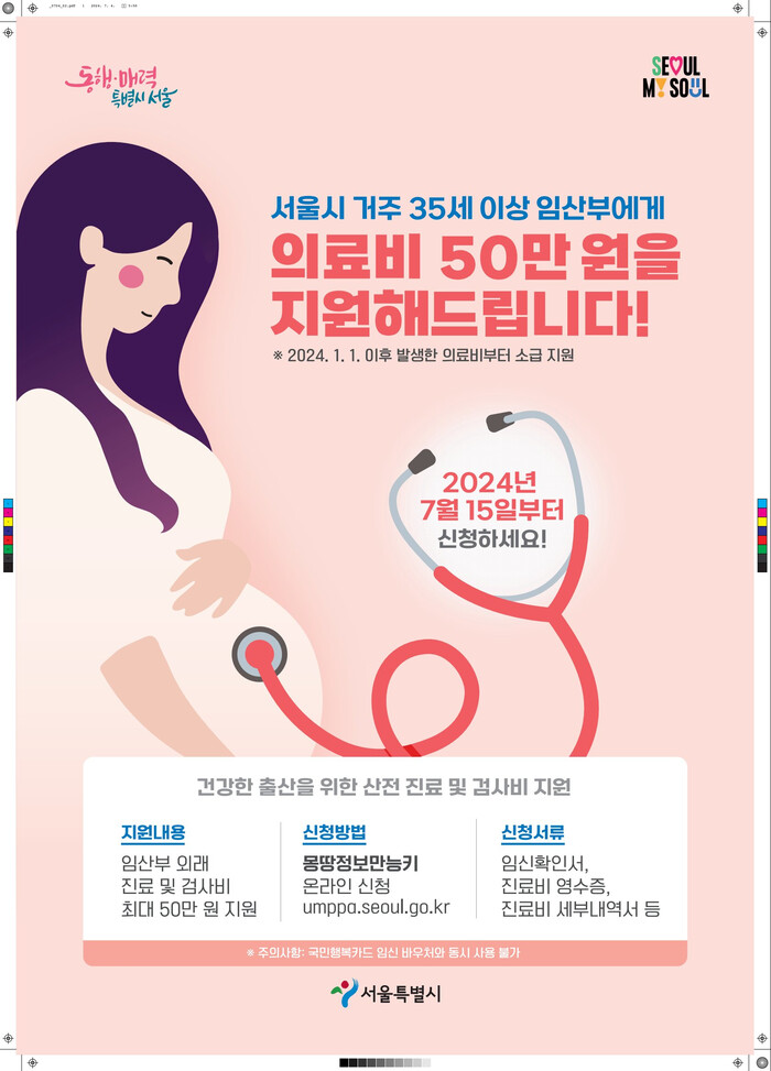 지원대상은 광진구에 주민등록을 둔, 분만예정일 기준 나이 35세 이상인 임산부이다. 최대 50만 원까지 지급하며 올해 임신기간 중 진료나 검사를 받은 일이 있으면 지원받을 수 있다.