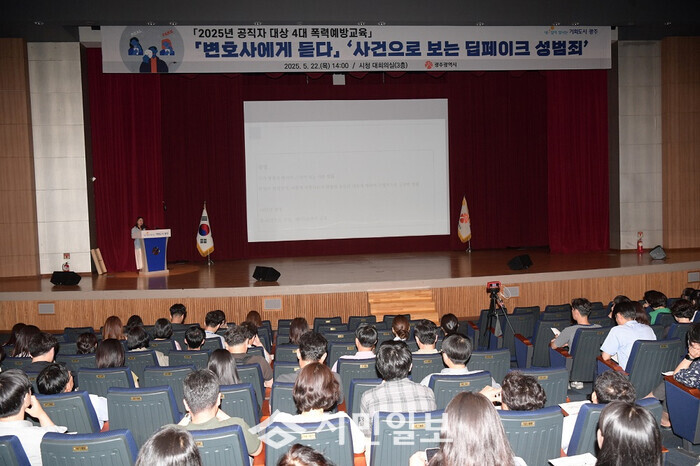 | ▲ 광주광역시, 22일 시청 대회의실에서 시청 공직자 대상 ‘2025년 4대 폭력 예방교육’ / 광주광역시 제공 |