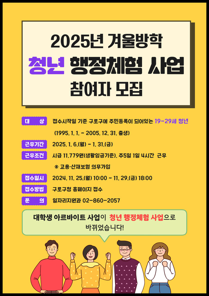| ▲ 2025년 겨울방학 청년 행정체험 참여자 모집 포스터. (사진=구로구청 제공) |