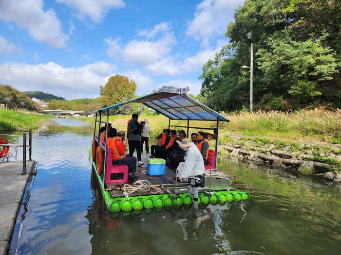 | ▲ 양재천 천천투어 뗏목체험 프로그램. (사진=서초구청 제공) |
