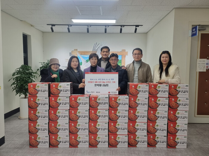 [인천=문찬식 기자] 봉사단체 호박재나눔회(회장 박현직)는 지난 16일 인천 계양구 계양2동 행정복지센터를 방문해 저소득 가정 지원을 위한 김치(10kg) 37상자를 기탁했다.
