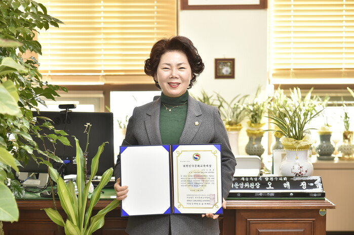 [시민일보 = 박소진 기자] 오해정 양천구의회 운영위원장(더불어민주당, 신월4·7동)이 지역 문화교육 발전에 기여한 공로를 인정받아 2024 대한민국 문화교육대상을 수상하는 영예를 안았다.