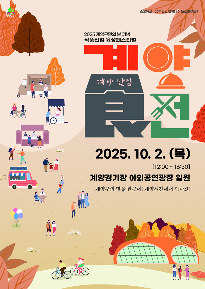 [인천=문찬식 기자] 인천 계양구(구청장 윤환)는 제31회 구민의 날을 맞아 행사를 오는 10월 2일 12시부터 계양경기장 야외공연광장에서 식품산업육성 페스티벌 ‘계양食(식)전’ 행사를 개최한다.