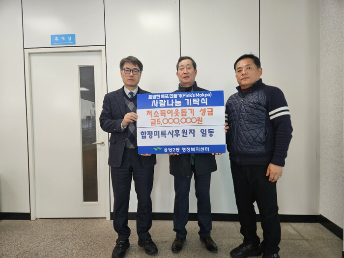 [목포=황승순 기자]지난 6일 함평군 학교면에 위치한 미륵사(주지 혜수스님)에서 용당2동 행정복지센터에 관내 어려운 이웃을 위해 써달라며 성금 500만 원을 기탁했다.