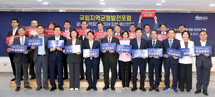 이들은 특히 포럼을 마치고 ‘국회지역균형발전포럼 광주 공동선언’을 발표했다. 공동선언에는 '인공지능전환(AX) 실증밸리 사업의 신속한 절차 추진과 내년도 국비예산 확보 지원', '대한민국 인공지능 3대 강국 도약을 위한 인공지능산업 육성법 제정', '인공지능 등 첨단분야 연구·개발(R&D)사업 예비타당성조사 면제 입법화', '인공지능 등 첨단분야 기회발전특구 규제특례제도 입법화' 등이 담겼다.