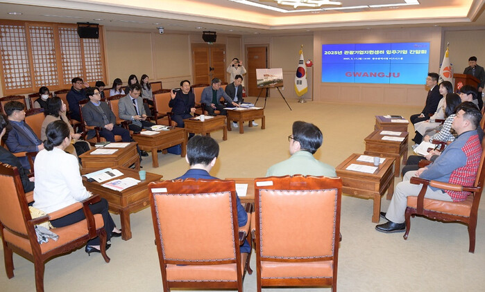 이날 시청 비즈니스룸에서 열린 간담회에는 강 시장을 비롯해 신홍식 광주관광기업지원센터장, 14개 관광기업지원센터 입주기업들이 참석했다.