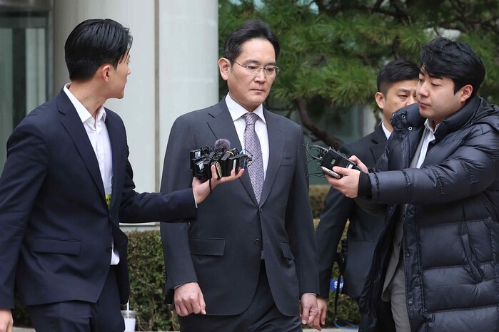 | ▲ 이재용 삼성전자 회장이 5일 오후 서울 서초구 서울중앙지방법원에서 열린 삼성그룹 경영권 승계 관련 부당합병·회계부정 혐의 1심 선고 공판에서 무죄 판결을 받은 뒤 청사를 나서고 있다. (사진=연합뉴스 제공) |