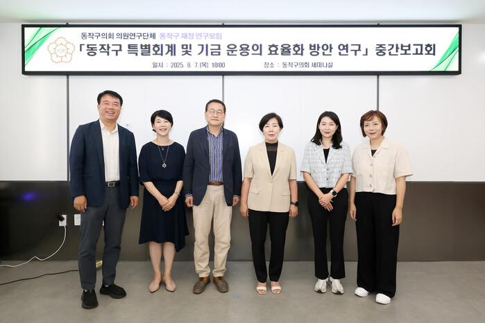 [시민일보 = 여영준 기자] 서울 동작구의회(의장 정재천) 의원 연구단체 ‘동작구 재정 연구모임’(대표의원 김효숙)이 7일 의회 세미나실에서 중간보고회를 개최했다.