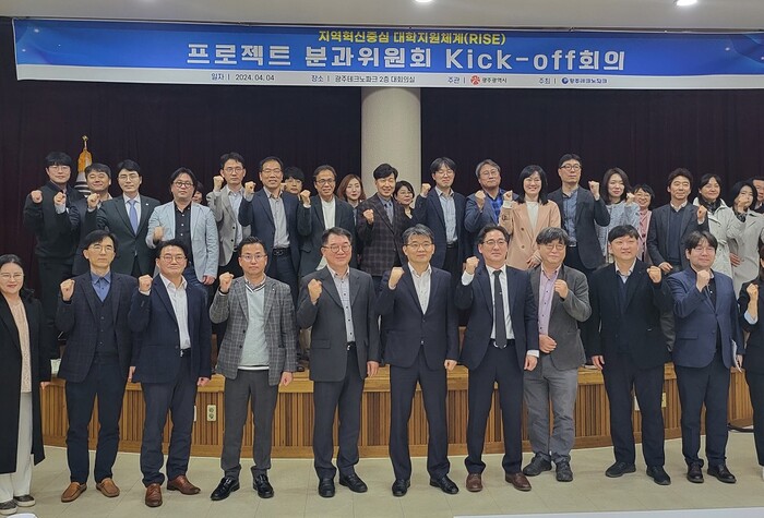 광주광역시(시장 강기정)는 4일 (재)광주테크노파크 대회의실에서 시교육청, 인공지능산업융합단, 광주연합기술지주, 중소벤처기업진흥공단 등 12개 기관과 11개 지역대학의 각 분야 전문가 33명으로 구성된 라이즈(RISE) 분과위원회 출범식을 개최했다.