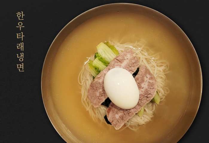 한우타래 평양냉면은 건강한 제주산 메밀로 만든 면, 깊고 진한 한우 육수, 맑고 깨끗한 맛의 동치미가 조화롭게 어우러져 담백하고 개운한 맛을 느낄 수 있다는 게 성산명가의 설명이다.