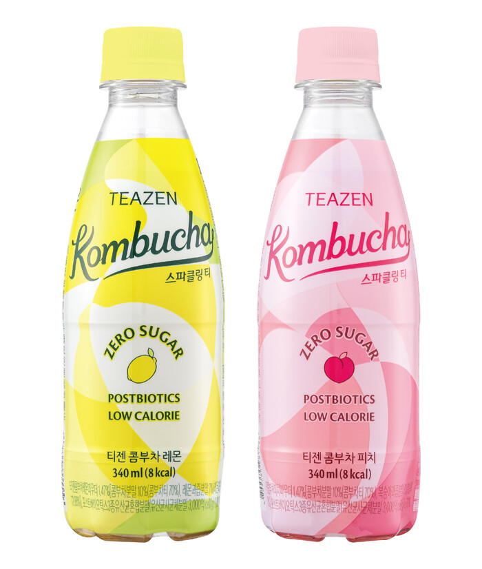 티젠에 따르면 이번 제품 타이틀은 '티젠 콤부차 스파클링티(340ml)'로 기존 콤부차에 탄산 성분을 추가해 톡 쏘는 청량감이 돋보인다. 특히 레몬, 피치 두 가지 맛으로 출시된 가운데 뚜껑만 개봉하면 언제 어디서나 마실 수 있는 간편함을 자랑한다.