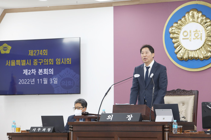 [시민일보 = 여영준 기자] 서울 중구의회(의장 길기영)가 지난 3일 열린 제2차 본회의에서 총 22건의 안건을 모두 가결한 후 제274회 임시회를 폐회했다.