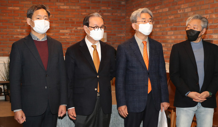 이날 오전 자유한국당(국민의힘 전신) 비상대책위원장을 지낸 인명진 목사와 이용구 전 중앙대 총장, 김준용 국민노조 사무총장, 임삼진 전 청와대 시민사회비서관 등은 여의도 카페 ‘하우스’에서 안 후보에 대한 지지를 철회하는 기자회견을 열었다.