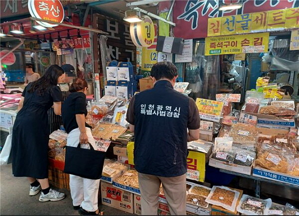 [인천=김형만 기자] 인천시 특별사법경찰은 수산기술지원센터, 군‧구와 합동으로 추석 명절 소비가 많은 제수용 식자재와 명절 선물 등에 대하여 시민들이 많이 찾는 장소와 업소를 중심으로 8월 26일부터 9월 12일까지 18일간 원산지 표시 특별 단속을 실시했다.