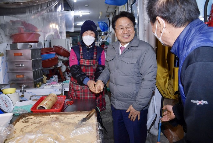 간담회가 끝난 뒤 강 시장은 온누리상품권으로 옥수수차, 간식, 설 명절 제수용품 등을 구매하고 시장 상인들을 격려했다. 또 시장을 찾은 시민들과 설 명절 덕담을 나누기도 했다.