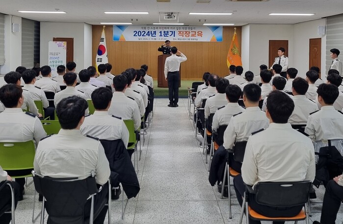 [해남=정찬남 기자] 전남 해남소방서(서장 최진석)는 해남소방서 3층 대회의실에서 19일부터 21일까지 3일간 2024년 상반기 직장교육 훈련을 실시한다.