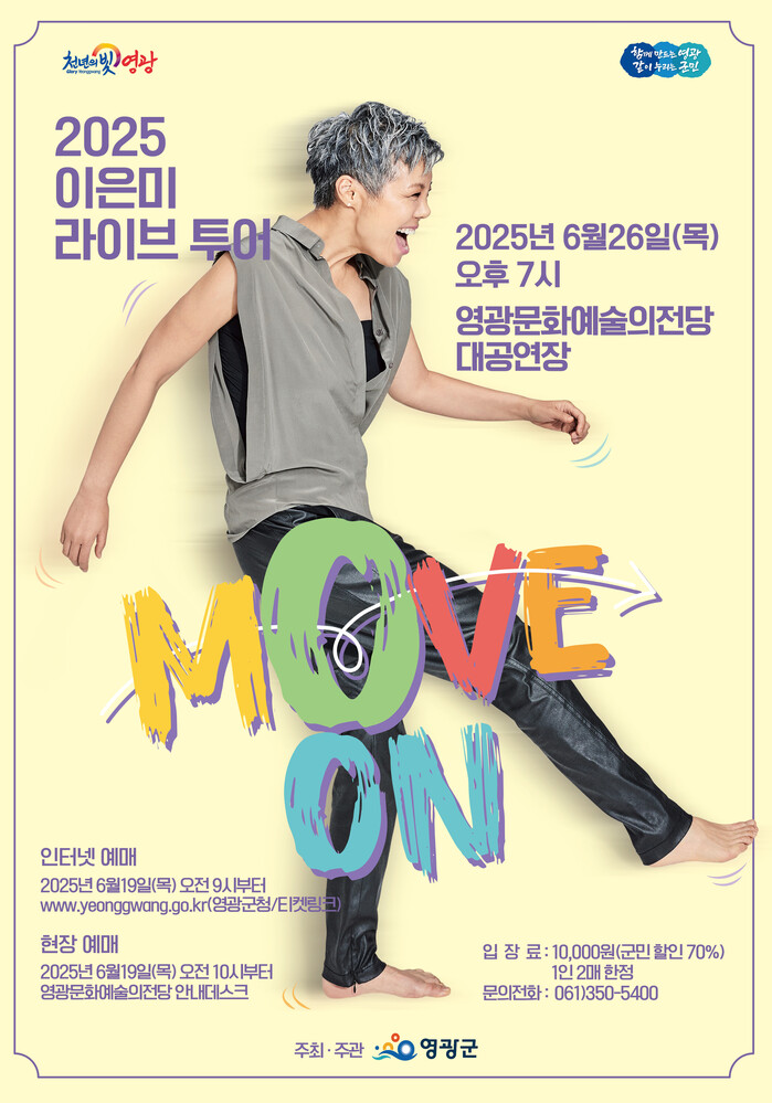 관람료는 전석 1만원(영광군민 3000원/1인 2매 한정)이며, 입장권은 오는 19일부터 티켓링크를 통해 인터넷 예매를 하거나 영광문화예술의전당 안내데스크에서 현장예매가 가능하다.