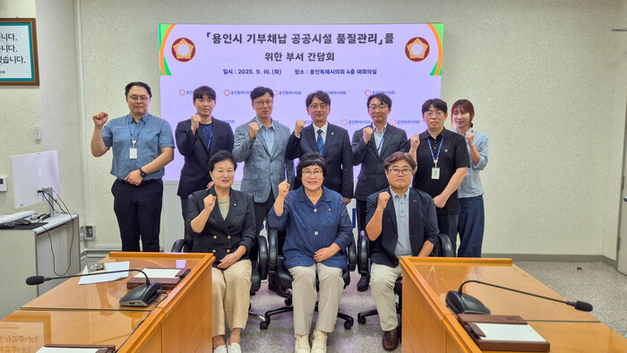[용인=오왕석 기자] 장정순 용인특례시의회 문화복지위원회 의원(풍덕천1ㆍ2동, 죽전2동 / 더불어민주당)은 16일(화) 도시건설위원회 위원 및 관계 부서와 정책간담회를 개최하는 등 기부채납 공공시설 품질관리 방안 마련에 광폭행보에 나서고 있다.