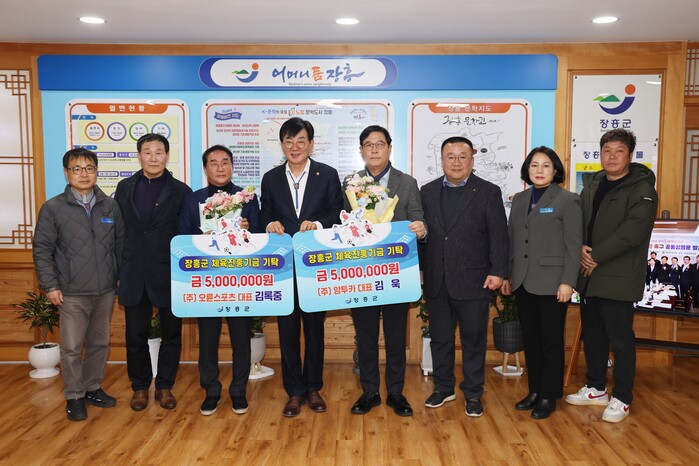 두 기업인은 장흥군 체육진흥기금에 1000만원, 장흥군 체육회운영기금에 1000만원을 기탁하며 지역 체육 발전에 힘을 보탰다.
