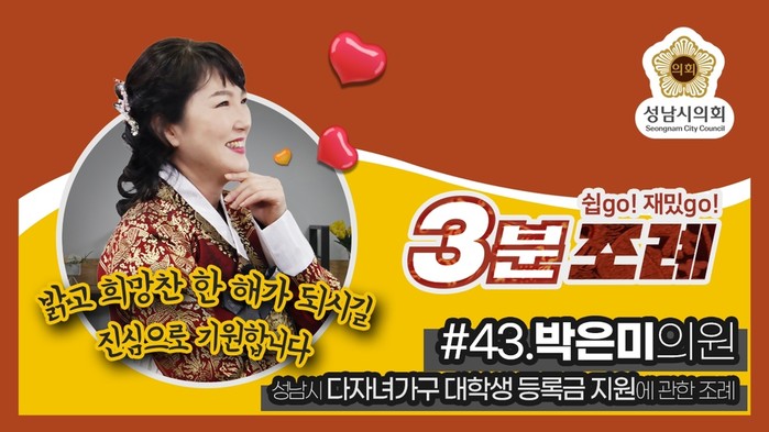 [성남=오왕석 기자] 성남시의회(의장 윤창근)는 3일 ‘성남시의회 3분 조례’ 마흔세 번째 영상을 시의회 공식 SNS에 게시했다.