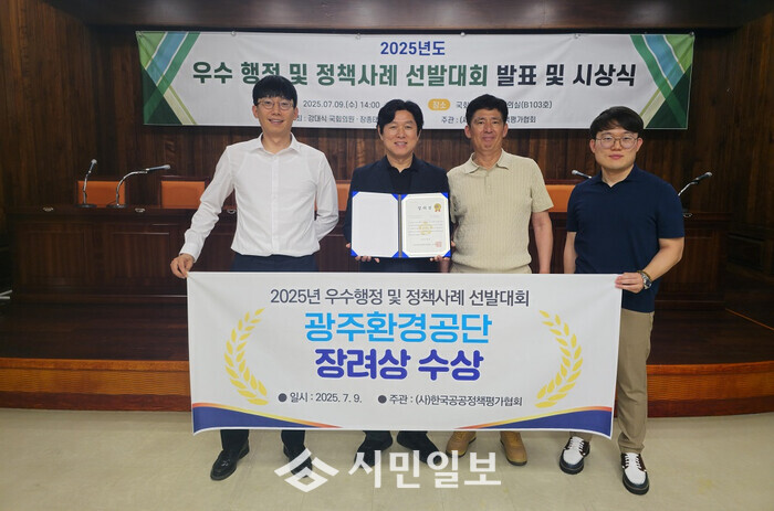 | ▲ 광주환경공단, 지난 9일 국회도서관 소회의실에서 열린 ‘2025년 우수행정 및 정책사례 선발대회’에서 지방공기업 부문 장려상 수상 기념촬영 / 광주광역시 제공 |