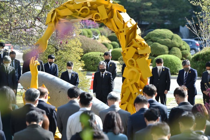이날 이재정 교육감과 직원 20여명은 4.16민주시민교육원 기억교실을 찾아 희생자들 책상에 노란 리본이 달린 꽃을 일일이 헌화하고 추모했으며, 도교육청 남부청사로 이동해 세월호 조형물 앞에서 직원들과 함께 희생자들을 기리는 추모식에 참석했다.