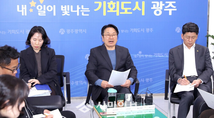 강기정 광주광역시장은 31일 시청에서 기자들과 만나 “실국장단과 매일 아침 진행하는 일일상황회의를 탄핵 선고 때까지 일일경제상황점검회의로 전환한다”며 “추경‧통상‧민생경제의 일일 점검을 통해 신속·탄력적으로 대응하겠다”고 밝혔다.