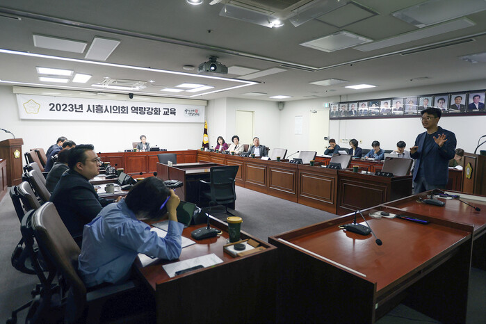 ‘2023년 시흥시의회 교육훈련 추진계획’에 따라 실시된 이번 교육은 11월 20일부터 실시되는 제312회 시흥시의회 제2차 정례회를 앞두고 예산안 및 기금운용계획안 심사기법을 주제로 강의가 진행됐다.
