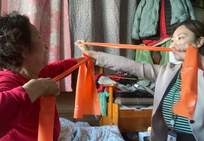 | ▲ 방문검진 중 치매예방활동 교육하고 있는 모습. (사진=노원구청 제공) |