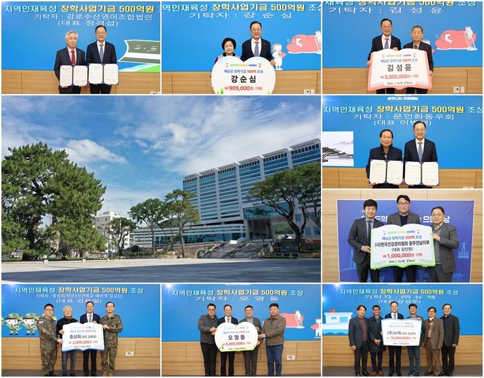 명현관 해남군수는 “장학기금 조성에 새해부터 전 군민이 동참해 주셔서 너무나 큰 힘이 되고, 감동이 되고 있다”며 “온 군민의 마음을 모은 장학사업기금 500억 원 조성사업이 순항해 지역과 상생하며, 선도적인 교육도시로 거듭나게 될 해남군을 지켜봐 달라.”고 강조했다.