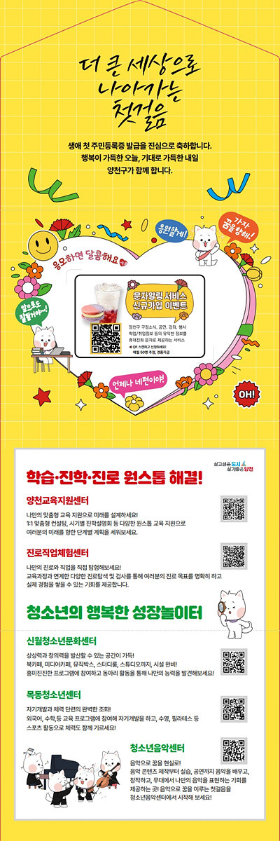 이번 축하카드는 법적 신분증명서인 주민등록증 발급 축하 의미와 함께 예비 성년으로의 첫걸음을 응원하고 유익한 청소년 정책 정보를 제공하고자 제작됐다.